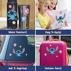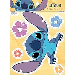 - Bring a touch of mischief and charm to your ride with this officially licensed Peeking Stitch Car Decal Set by Disney. Featuring Stitch in his classic curious pose, this vibrant decal makes it look like Experiment 626 himself is peeking out from your window. Included with the main decal are four colorful hibiscus flower stickers that enhance the playful, tropical vibe. The main Stitch decal measures 5" tall, making it the perfect size for vehicle windows, laptops, or bedroom walls. His wide eyes and oversized ears give him an instantly recognizable and endearing look, while the high-quality artwork ensures crisp lines and bold color. It’s a fun and stylish way to show your love for the Lilo & Stitch franchise. Printed on premium outdoor-rated vinyl, these decals are built to last. They’re weather-resistant, UV-protected, and won’t fade over time—so whether you place them on your car, water bottle, or tablet case, they’ll keep Stitch looking sharp. The peel-and-stick backing makes application easy, with no residue left behind if you ever decide to remove or reposition them. This set of 5 decals is perfect for Disney fans of all ages. Whether you’re customizing your car or decorating your favorite items, this Stitch decal brings a bit of aloha wherever it goes.