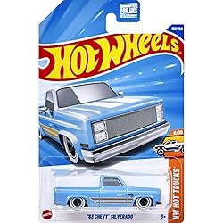 - Rev up your collection with this stunning 1:64 scale Hot Wheels '83 Chevy Silverado in captivating blue! Part of the Hot Trucks series (9/10) and numbered 157/250, this die-cast metal vehicle captures the classic charm of the iconic pickup truck. The detailed craftsmanship showcases the rugged beauty of the Silverado, perfect for both play and display. Featuring die-cast construction and manual operation, this collectible vehicle measures approximately 3 x 5 x 7 inches in its packaging. Suitable for ages 3 and up, it's an excellent addition for collectors and truck enthusiasts alike. The manual operation ensures endless hours of imaginative play, while the quality die-cast metal construction provides durability and authentic feel. Whether you're adding to your Hot Wheels collection or starting a new one, this '83 Chevy Silverado is sure to make a statement.