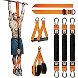 [Master Pull Ups Faster] Ready to conquer pull ups? This assist band set with up to 225lb adjustable resistance helps beginners and pros build strength quickly, letting you perform pull ups independently and see progress faster. [Dual Foot Pedals for Stability] Upgraded double footrests keep you balanced and comfortable, ensuring correct posture and safer training during every session. [Full Body Strength Training] Targets arms, back, chest, and core while engaging legs for balanced muscle building. Perfect for home gym workouts and consistent strength gains. [Heavy Duty & Built to Last] Made with durable straps, strong D-rings, and protective covers, this pull up assist kit resists wear while providing secure support for heavy-duty daily workouts. [Easy to Use Anywhere] Attaches to pull up bars, doorway bars, or outdoor bars in seconds. Lightweight with a carry pouch for portable workouts at home, gym, or outdoors.