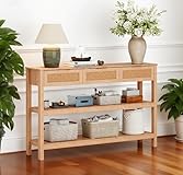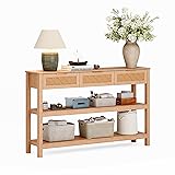 LAUSAINT HOME Sofa Console Table, 51" Entryway Table with 3 Rattan Drawers & 2 Storage Shelves, Natural Color Couch Tables for Living Room, Hallway, Entrance