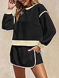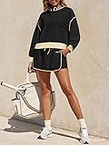 Comfortable Material:Made from a soft blend of polyester and cotton, the outfit is lightweight and breathable, providing comfort during workouts or relaxation at home. The plush material moves with you, offering support and flexibility. Thoughtful Design: This womens 2 piece set features a trendy color block drop shoulder sweatshirt and comfortable drawstring short with built-in shorts.The sweatshirt's collar and sleeve hems showcase a unique design that harmonizes with the edge of the shorts, creating a cohesive and stylish outfit for both casual outings and home wear. Versatile Fit: The shorts come with an elastic drawstring, providing better body inclusivity and ensuring a customized fit, making this set suitable for various body types and preferences. Multi-Functional Use: Ideal for casual outings, home lounging, or sports activities, this outfit allows you to move freely and stylishly, making it a versatile addition to your wardrobe. Easy Care: With its durable materials, this athletic set is machine washable, ensuring effortless maintenance and long-lasting wear for your active lifestyle.