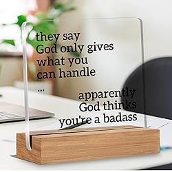Outstanding Design: This clear acrylic sign features a sleek and minimalist design but also showcases excellent printing quality. It blends playful text with vibrant visuals, offering both function and aesthetics Ideas Gift: This refined acrylic desk sign gift expresses your love and care for her. It makes an ideal gift for dads, moms, friends, colleagues, bosses, children, and those you love to bring a good mood to them every day Dimensions: Measures approximately 4 x 4 inches, with a wooden stand 4 x 1.5 x 0.8 inches, convenient to store without taking too much space Meaningful Gift: This acrylic sign serves as a heartfelt and meaningful present perfect for birthdays, Thanksgiving, Christmas, anniversaries, housewarmings, and many other special occasions, providing a lasting reminder of the love and care you share with one another Home Decoration: This clear acrylic sign is suitable for decorating various occasions, such as an office desk, shelf, dresser, coffee table, living room, bedroom or anywhere you want to bring a touch of warmth and hope