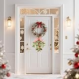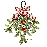 Mistletoe Christmas Decor, Artificial Hanging Mistletoe Picks with Plaid Bow Red Berries,Like Real Christmas Kissing Ball Ornaments for Kitchen Doorway Tree Decorations (1)