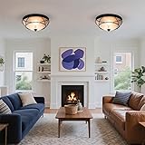 LOCLGPM 12" Black Classic Dome Flush Mount Ceiling Lights Set of 2, Frosted Glass 2-Light Bronze Lighting Fixtures, Farmhouse Rustic Ceiling Lamps for Living Room Kitchen Bedroom Hallway Staircase