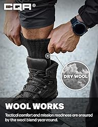 CQR Outdoor Mid-Calf Performance Socks [Find your Size] Medium 8~9.5 / Large 10~12 [Materials] Crafted with a superior Wool Blend, these high-performance socks deliver all-season comfort. [Choose your Perfect Length] Choose your ideal fit with two length options: Mid-Calf for boot protection or Micro Crew for lighter wear. [Foot Protection] Heel and Sole Cushioning shields your feet from fatigue and injury on rough terrain. [Ultimate Versatility] Designed for military, work, or rugged outdoors. Withstand the toughest challenges, perfect for daily wear to high-intensity trekking.