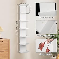 - Specifications: Material: wood Color: white Dimensions: 43 inches x 7.1 inches x 5.5 inches. Package includes: 2 x 7 Tier White Wall Shelf Unit