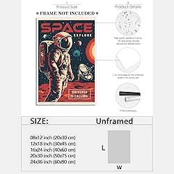 Retro Space Exploration Wall Art;This retro space wall art captures the spirit of cosmic adventure with a vintage astronaut theme and a stunning Milky Way galaxy background. Perfect for sci-fi lovers dreamers and space enthusiasts it brings a nostalgic and artistic touch to your wall decor. High-Quality Canvas Print;Crafted using premium canvas printing technology this artwork offers vivid colors fine details and long-lasting durability. It's waterproof fade-resistant and ideal for decorating your living room bedroom office game room or any space needing a galactic vibe. Versatile Space-Themed Decor;This outer space wall decor suits a wide range of interiors from modern to vintage. Whether you're decorating a boy’s room adding character to your workspace or building a sci-fi-themed gallery wall this piece adds a bold imaginative statement. Multiple Sizes Available & Easy to Hang;Available in various sizes to fit your space each canvas is designed for easy framing or wall mounting. Whether used as astronaut room decor or part of a larger galaxy-themed wall it's a stylish and meaningful addition to any room. After-Sales Service: We cherish your purchase experience very much if you have any problems with the Poster wall art You can contact us by email at the first time. We hope to communicate quickly and efficiently and resolve any issues you may have.