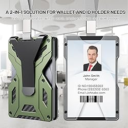 【2-in-1 Multifunctional Design for Daily & Work Needs】:This metal wallet combines a card holder, money clip, and clear ID window in one—ideal for displaying employee badges, IDs, or access cards without removing them . The back clip can attach to your pants pocket or shirt, and adding a lanyard lets you hang it around your neck for extra security. Perfect for office workers, students, and anyone who needs quick access to IDs while staying organized. 【RFID Blocking Wallet】 : This anti-theft wallet Built-in NFC/RFID blocking shields your credit cards from electronic theft. Safeguard your privacy and financial data the greatest extent.—this credit card wallet ideal for urban commuting and international travel. 【Slim and Portable, Fit Front Pocket】:At only 0.4 inches thick and 3.17 oz, This minimalist men’s wallet slips effortlessly into your front pocket—no more bulky back pocket discomfort or unsightly bulges. Perfect for commuters, travelers, and busy professionals who need a lightweight, portable solution to carry essentials without weighing down their outfit. 【Large capacity & with ID window and quick access】: The flexible and durable elastic bands allow the mens wallet to hold up 15 credit cards easily; The back clip of the wallet for men can hold banknotes, and the front of the wallet is designed with an Transparent ID card slot ( ID card, access card, employee card or bus card ),The anti-theft material will block the sensing signal, and the bus card and ID card need to be taken out and scanned , money clip wallet solving the "stuck cards" issue in other metal wallets,The C-shaped cutout lets you push cards out in 1 second. 【Carbon Fiber + Metal Material, Durable and High - End】: Framed in high-quality aluminum + carbon fiber, this aluminum wallet resists crushing, scratches, and deformation and has a stylish and high - end appearance, the sleek mechanical design matches modern men's demand for both style and functionality. making it a perfect combination of durability and fashion. 【Great Present Ideal for Men)】: This business card holder is not only a practical accessory, high end appearance makes your temperament and image more charming. Men's tactical wallet is a great gift for boyfriends, brothers, sons, husbands, fathers, or male friends on birthdays, Thanksgiving, Christmas, New Year, or Valentine’s Dayanniversaries, and graduation ceremonies.