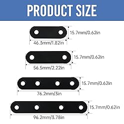 Reliable material: The flat mending plates with screws are made of 304 stainless steel, which are waterproof and corrosion resistant, can be used both indoor and outdoor Strong compatibility: The metal plate with holes are with 0.06"/1.6mm thickness and 0.63"/16mm width, 4sizes length in a plastic box to meet your different needs Easy to operate: The brackets for braces are with smooth surface, not easy to scratch hands, and the kit comes with enough screws, it is easy to install with them Package include: 28sets straight mounting brackets including 8pcs 1.82"/46mm, 8pcs 2.22"/56mm, 8pcs 3"/76mm, 4pcs 3.79"/96mm length mending plates and 80pcs screws, 108pcs totally Applications: Our flat mounting brackets can be used for reinforced wood furniture such as bed, desk, table, chair, cabinet,.etc