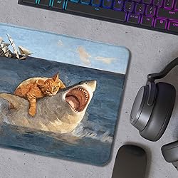Foritho Funny Shark Mouse Pad, Funny Orange Cat Attack Shark Mouse Pads for Wireless Mouse Computers Laptop Desk Accessories, Cat Office Supplies, 9.5x7.9 Inch
