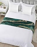 ZFUNCING Abstract Marble Stone Texture Bed Runners for Bedroom Hotel,Decorative Bedding Scarf Green Gold Striped Bed End Blanket Bedding Runner Scarves for Queen Size Bed,94x20in