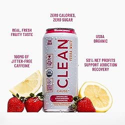 NEW CLEAN Cause Zero Sugar Strawberry Lemonade Yerba Mate Tea Sparkling, USDA Organic Energy Drink Alternative, Zero Calorie, 160mg Natural Caffeine, Soda Alternative (16oz cans, 12-Pack Case)