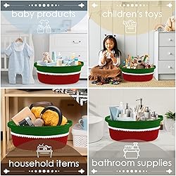 Complete & Charming Gift Presentation: Each gift basket empty includes a gift bag, coordinating ribbon, and a greeting card for instant, beautiful gifting. Perfectly sized (12"x8"x5"), it's an exquisite, warm gift choice for christmas, baby showers, easter, wedding, birthdays, and special occasions Adorable Dual-Tone Design: The gift basket features a Christmas green and red combination and is decorated with delicate lace plush trims. This small decorative basket makes a gift itself! Perfect for baby nurseries, Easter displays, Christmas gifts decor, or enhancing living rooms, bathrooms, and bedrooms Versatile Storage Basket: This small woven basket excels as storage! Ideal for organizing baby items, toys, books, toiletries, remotes, pet toys, or craft supplies. Use it in bedrooms, bathrooms, offices, or on shelves—a large organizational solution in a compact size Soft & Safe Woven Material: Crafted from natural, chemical-free cotton rope, our basket is soft, durable, and skin-friendly. Safe for baby items and pets, with no sharp edges to scratch furniture or floors. Holds its shape well for lasting storage and gift presentation Portable & Ready to Use: Sturdy handles make carrying easy. For easy packaging and transportation, slight creases during transportation will fade naturally with use (or gentle steam ironing). Simply fill with your thoughtful gifts or use immediately for stylish storage