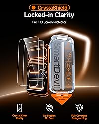 𝐂ompatibility: Built for iPhone 17 Pro Max (6.9") with a precision-fit and case-friendly edges to help prevent lifting 𝐁ubble & 𝐃ust-𝐅ree 𝐈nstall: Skip the complicated setups — our auto-alignment tool helps control dust for a clean, bubble-free finish. Place the installation kit on the phone, pull the tab, then press down for a few seconds to complete the install 𝐄dge-to-𝐄dge 𝐂overage: Precision-cut for iPhone 17 Pro Max with 3D contoured curved edges for full coverage that helps keep dust and scratches out — case compatible design helps reduce edge lifting 𝐇𝐃 𝐁are-𝐒creen 𝐂larity: Optical-grade, high-transparency material keeps your display bright and crisp. Oleophobic coating helps repel fingerprints, smudges and oils for a cleaner and clearer screen 𝐏rofessional 𝐒upport: Built around your satisfaction — each kit includes a dust-control install tool, 2 protectors, and 2 cleaning kits. If you need help. SMARTDEVIL support is ready with quick answers and easy replacement
