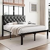 Einhomn Queen Metal Bed Frame, Queen Platform Bed Frame with Button Tufted Faux Leather Headboard, Sturdy Steel Slats, No Box Spring Needed,12" Underbed Storage, Noise Free, Black