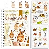 Watercolor Workbook with Step-by-Step - 12 Watercolor Coloring Pages - 100% Cotton 300gsm/140lb Watercolor Paper - Gift for Women, Adults, Beginners (Animals)