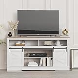 YESHOMY Fireplace TV Stand for Television up to 65+ Inch with Storage and Farmhouse Sliding Barn Doors, Entertainment Center with Cabinet and Shelves, Media Console for Living Room, White
