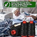 【Strictly control and pay attention to details】 Specialized in sewing thread for more than 20 years, according to customer demand and response, constantly optimize the production process, using high-quality raw materials and lubricants, each finished product has been inspected, has reduced the number of customers to buy defective products and other situations. 【GREAT DURABILITY】 100% Spun Polyester thread 40S/2 (Tex27), owning the strength of polyester with a soft touch and matte look of cotton. Compared to other cone thread for sergers, our fray & shrink-free serger machine thread is stronger, with minimal lint, can withstand high-speed sewing & tension, High tensile strength, holds up colors and no shrinking even when subjected to commercial laundering, bleaching and other harsh chemicals. 【Wide range of compatibility】 Featured with high tensile strength, our all purpose polyester thread can work smoothly and compatible with Brother, Babylock, Janome, Singer, Pfaff, Juki, Use for Serger, Over lock, Merrow, single needle etc. The sewing thread can be used for a variety of sewing machines or embroidery machines which with automatic winding function. The thread set to keep your sewing project simple, practical and user-friendly, whether you're a professional or a beginner. It could fulfill most of your home use project needs. 【Easy to use and convenient to store】 Black thread for sewing machine lays flat and goes through loopers & needles without friction & yields clean lines. Each white thread for sewing machine with a pouch to prevent dust and other dirt from getting on it when storing it for everyday use. Well suited machine & hand sewing, basting, hemming, piecing, decorative stitching, embroidery, garment making, upholstery, seaming, & overlocking. 【Black Polyester Serger Spools Thread Sewing Supplies Kit】 This pack contains 4 Large Cones (Each cone is 6000 yards) of All Purpose Polyester Thread. The total length is 24000 yards. 4 dust bags. Serving as great Black all-purpose thread for sewing, serging thread, sewing machine threads, coverstitch thread, overlock thread, & longarm machine quilting thread, embroidery.