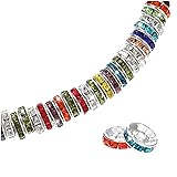 100 pcs 10 mm Mix Color Large Hole Rhinestone Spacer Beads Silver Plated Beads Crystal Charm Spacer Bead for Jewelry Making Bracelets