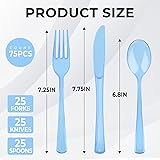 75 Pack Disposable Cutlery Set, Light Blue Plastic Silverware Clear Heavy Duty Utensils Set Includes 25 Forks 25 Knives 25 Spoons for Birthday Wedding Party Picnics Outdoor Events (75, Light Blue)