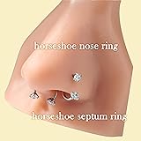 - Longita Horseshoe Nose Ring for Women Double Gem Horse Shoe Nose Ring Hoop 18g Surgical Steel Silver Cartilage Helix Tragus Earring Hoops Labret Lip Piercing Jewelry Small Septum Rings 18 gauge 4pcs