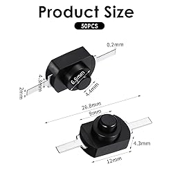 PRODUCT CONTENT:Receive 50 high-quality latching mini switch, each measuring 12 x 8 x 8 mm (0.47 x 0.31 x 0.31 inches) – good for a variety of projects. (Pin dimensions not included) PARAMETER DETAILS:Terminal: 2 Pins; Model: 1208YD; Rated Voltage: DC 30V, Rated Current: 1A; Contact Resistance: 200M ohm max, Insulation Resistance: 100M ohm min DURABLE METAL & PLASTIC CONSTRUCTION:These latching push button switch are built to last, combining durable copper and plastic components for reliable performance and long-term use EASY INSTALLATION:The power switch on off with 2-pin terminal design ensures quick and easy installation into your projects, saving you time and effort VERSATILE APPLICATIONS:Latching switch is good for DIY electronics, flashlights, appliances, and more. These self-locking push button on off switch provide a simple and reliable on/off function