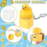 Bundle of Three for More Fun: includes 1 quacking duck keychain fidget, ensuring you can share the fun with family and friends, you're always ready to spread cheer and manage stress effectively Rechargeable for Endless Fun: never worry about running out of joy with this rechargeable quacking duck, it's designed to deliver hours of entertainment, making it the ideal gadget for adults alike; Just press, hear the quack, and feel stress melt away with its delightful sound Compact and Convenient: duck keyboard keychain with compact size ensures it can be attached to backpacks, keyrings, or handbags, providing instant stress relief at your fingertips and brightening your day with a cheerful quack Stress Relief On-the-go: this duck quacking keychain is made with durable ABS and plastic, this portable accessory delivers decompression with every press, creating a satisfying quacking sound and colorful lights, Keep stress at bay with this fun, rechargeable, and travel-friendly keychain Bright and Cheerful Addition: the vibrant yellow color of the ducks fidget add a splash of joy to your day, whether you're at home, in the office, or on the move, this eye-catching fidget is sure to bring a smile with its quirky design and sound, making stress relief both effective and entertaining