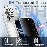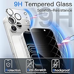 [Compatibility & Privacy Protection] Exclusively for iPhone 17 Pro 6.3-inch. NOTE: Not for iPhone 17 / Air / 17 Pro Max. The screen is only visible to the person directly in front of it. Effectively protect your privacy from peeping [Easy to Install] The included easy installation tool allows you to align perfectly, and install the screen protector effortlessly without leaving any air bubbles [Superior Quality] Built with premium tempered glass. Protect the screen and camera lens from scratches and abrasions up to 9H (harder than a knife) [Night Shooting Mode] The camera lens protector with upgraded built-in night circle allows you to use the flash function normally at night. High light transmittance ensures the original quality of pictures and videos [Anti-Fingerprints] The oleophobic coating keeps the screen away from fingerprints and oil. Highly responsive to every touch and tap
