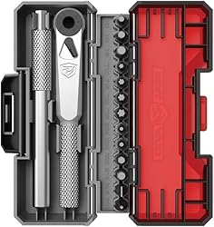 Versatile 3-in-1 Driver: Integrates a 72-tooth ratcheting driver for precise control, a T-handle for added leverage during adjustments and a traditional screw driver for everyday tasks 13 Most Popular Bits: Our screwdriver bit set includes Torx (T10, T15, T20, T25), Phillips (#1), flat (5mm) and both metric (3.0mm, 4.0mm, 5.0mm) and standard hex (5/64", 3/32", 5/32", 3/16") bits Ergonomic & Secure Grip: Diamond-patterned knurled handle ensures comfortable, slip-resistant use, even in challenging conditions. The 4" extension reaches deep and tight spaces with ease Portable Case: All components are housed in a compact toolkit, rugged storage case designed to keep all tools securely in place while providing easy access whether at the workbench or in the field Wide Compatibility: Built to meet the needs of professionals who demand precision and reliability X3 tool kit is perfect for tightening scope rings, mounting accessories or securing optics