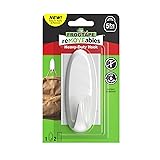 HOLDS FIVE POUNDS: Each FrogTape reMOVEables Heavy-Duty Large White Hook holds up to five pounds; Heavy-duty wall hooks can hold a variety of large items such as backpacks, brooms, dry erase boards, kitchen tools and more DAMAGE-FREE MOUNTING: Quick installation and damage-free hanging without nails or other tools; Features CleanGrip Technology to hold strong to the surface but remove cleanly without leaving a residue STICKS TO A VARIETY OF SURFACES: Attach to any smooth, firm surface such as drywall, tiles, glass, wood, plastic and more; Not for use on wallpaper, rough, porous or delicate surfaces REUSABLE WALL HOOKS: Removable wall hooks take seconds to remove and can be reused with a new adhesive strip; Each heavy-duty wall hook comes with extra adhesive strips to reuse the hooks SURFACE PREPARATION: Make sure the surface is clean and dry, removing any dust or debris; Wait seven days after painting to apply wall hook to surface HOW TO APPLY: (1) Remove strip from sheet and press evenly on the baseplate; (2) Remove liner from strip and press hook to desired mounting surface; (3) Press and slide up to remove hook from base plate – apply even pressure to base plate for at least 15 seconds; (4) Slide hook back onto base plate until it is locked in place and wait at least one hour before use HOW TO REMOVE: (1) Press and slide up to remove hook from baseplate; (2) Hold edges of base plate, grab tab below line and pull directly down on adhesive strip slowly; pulling away from the wall will cause damage, keep strip and tab close to wall when stretching to remove
