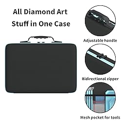 60 Individual Transparent Slots: This diamond art storage organizer features 60 separate compartments that come with a foam base, offering ample space to neatly sort and store up to 60 different colors of diamond drills, along with all your tools like diamond pen, wax, and tweezers. The transparent lids allow for easy color identification, enabling quick access and significantly boosting your crafting efficiency. Thickened & Waterproof Material: This diamond art kit for adults is crafted from high-density Oxford fabric and thickened lining. This case is sturdy and durable, providing excellent crush-resistant and shockproof protection for your precious diamonds. The inner moisture-proof layer effectively shields your drills from humidity, preventing them from losing adhesion, making it ideal for long-term storage of your diamond painting kits. Lightweight & Portable Design: Designed to be lightweight and portable with a sturdy handle, this bag is easy to carry anywhere. The smooth double-zip closure ensures a secure seal, preventing accidental spills of your diamonds. Perfect for enjoying your diamond painting hobby at home, while traveling, or at friends' gatherings. All-in-One Storage Solution: Say goodbye to mess! This diamond painting kits keeps all your diamond painting accessories—drills, tools, and canvas—neatly in one place. It helps maintain a tidy workspace, allowing you to focus purely on your creative project and enjoy an immersive crafting experience. Versatile for Various Crafts & Ideal Gift: Not only perfect for 5D diamond painting storage, but also an excellent organizer for cross-stitch threads, beading supplies, micro-bricks, sewing kits, and other small craft items. Its thoughtful and practical design makes it a fantastic gift for family, friends, or craft enthusiasts, showing your care and good taste.