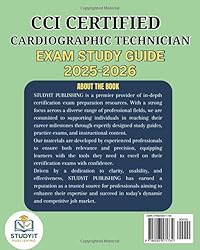 - Prepare to launch your career as a Certified Cardiographic Technician (CCT) with this authoritative and in-depth exam study guide designed specifically for the current CCT certification standards. This CCI CCT Exam Study Guide is your trusted companion for mastering the essential concepts, clinical practices, and interpretive skills required to succeed on exam day and excel in the field of cardiographic technology. This guide goes far beyond surface-level review. It offers a clinically grounded, hands-on approach that reflects the real-world responsibilities of CCTs in today’s fast-paced healthcare environment. Inside, you’ll discover:Comprehensive Coverage of the Exam Blueprint: Explore every key domain tested by Cardiovascular Credentialing International (CCI), including ECG interpretation, rhythm analysis, Holter monitoring, stress testing, pacemaker recognition, and cardiac pharmacology.Step-by-Step Procedures: Master correct lead placements, ECG machine setup, and troubleshooting techniques with clear walkthroughs and technician-focused insights.Rhythm and Strip Interpretation Practice: Develop diagnostic confidence with labeled ECG samples, waveform analysis, and side-by-side rhythm comparisons including sinus, atrial, junctional, ventricular, and life-threatening arrhythmias.Artifact Identification and Troubleshooting: Learn to distinguish between physiological and technical artifacts and apply strategies to correct them, with real case examples and technician responsibility checklists.Up-to-Date Pharmacology: Understand the effects of common cardiovascular drugs including beta-blockers, ACE inhibitors, antiarrhythmics, and emergency medications on ECG findings and patient safety.High-Yield Case Studies: Apply concepts to real clinical scenarios with mini-cases.Exam-Ready Tools: Reinforce your learning with chapter-based practice questions and “common mistake” alerts that highlight frequent errors and their solutions.Whether you’re a student entering the field or a healthcare professional seeking certification, the CCI CCT Exam Study Guide delivers the comprehensive foundation and strategic edge you need. Equip yourself with the skills to interpret ECGs accurately, respond to cardiac events confidently, and pass the CCT exam with excellence. Begin your journey toward certification and clinical mastery today your success as a Certified Cardiographic Technician starts here.
