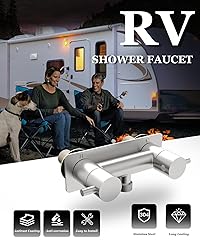 DURABLE MATERIAL: 4" RV shower faucet is made of stainless steel, ensuring durability and corrosion resistance . The handheld showerhead is made of high-strength ABS material, offering a lightweight and comfortable feel. PRACTICAL: The minimalist and compact design is particularly suited for small RV shower stalls. The adjustable-angle handheld showerhead offers three spray modes to better meet your cleaning needs. PRECISE CONTROL: The metal dual-lever handle design allows for quick adjustment of water temperature and pressure, with smooth and unobstructed operation. The minimalist design ensures smooth and reliable performance, enhancing your RV shower experience. UNIVERSAL COMPATIBILITY: Suitable for any 2 holes, 4 inch opening. Whether for outdoor camping showers or indoor bathroom layouts, our RV shower faucet valve can adapt to your needs. EASY INSTALLATION: No plumber required for simple installation, and compatible with external shower units on campers. If you have any questions about the shower faucet valve diverter, please feel free to contact us.