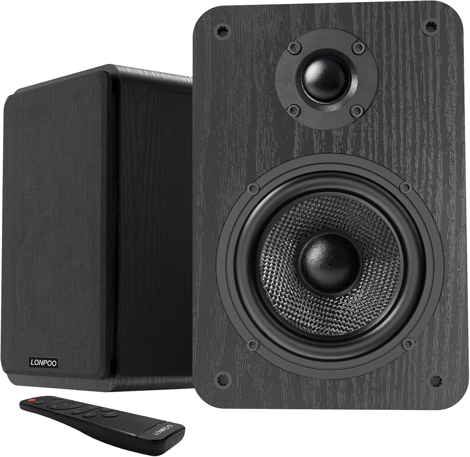 [Compact and Delicate Design] Measuring 11cm (W) x 18cm (H) x 14cm (D) per speaker, with the similar width and height of an often-seen mobile, the LP-42S is suitable for any desktop setup style [Powerful Output] The 42S has a total output power of 30W RMS, consisting of 15W+15W (full-range) , equipped with 3" aluminum drivers, and features a high-efficiency closed-loop Class-D audio amplifier [Multiple Inputs] Offers versatile connectivity with Bluetooth V5.3 for wireless streaming, and both AUX,USB inputs and 3.5mm Earphone jack for wired connections 【HIGH-RESOLUTION AUDIO】 Take your digital music collection to another level with High-Resolution Audio. By capturing music at a higher rate than CD, increasing both audio samples per second and the bitrate accuracy of each sample, High-Resolution Audio offers a near-perfect capture of an artist’s music. 【LONPOO's UNMATCHED QUALITY AT AN AFFORDABLE PRICE】With these value-priced speakers, you can now enjoy premium acoustics, high quality construction, easy setup and a spectacular theater experience right at home