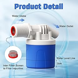 Material: Nylon PA66 food grade material, the apperance is fine and smooth, stainless steel filter and screws, rust and corrosion resistant, long service life. Working principle: when the water in the water container is lower than the control valve water level control line, the inlet valve opens the water, and when the water level rises to the control valve water level control line, the inlet valve closes and stops the water supply. This automatic water level control float valve is the replacement of the traditional float ballcock, which no eletricity, small volume, large flow. Easy to use: our water float valve without electricity, small size, long life, low failure rate, saving water resources. Work pressure: 0.01MPa~1.5MPa Widely application: this float valve widely used in water tank, water tower, swimming pools, solar energy, toilets, aquaculture, livestock drinking water, etc.