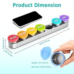 SUPERIOR MATERIAL - The body is made of a whole piece of 304 Stainless Steel , and the cover of pill box is made of BPA-free Silica Gel. With excellent hand feel and simple design, the pill box is very sturdy and durable. Say goodbye to the plastic medicine box. WATERPROOF DESIGN - The medicine box has passed the professional IPX7 waterproof certification. The multi-spiral design of cover keeps your pills always dry even completely immersed in water. You can take the pill box to outdoors, poolside, beach and wherever you go. The pill holder comes in a compact size that can be easily put into your backpack. This small pill holder is suitable for small pills or daily dose. Perfect for holding your daily vitamins, supplements and other emergency pills. The whole size is about 14.6*1.9*2.24 inch/37*4.8*5.7 cm, the single cup size is about 1.37*1.37*1.65 inch/ 3.5*3.5*4.2 cm. AS A CUP - You can use it to drink water anytime, anywhere,suitable size for adults or kids daily use. Also suitable for both indoor and outdoor activities, such as birthday parties, home gathering, traveling, camping and so on.