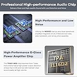 【High-Power Stereo Sound】Equipped with a TPA3116 amplifier chip, 2.0 channel, this HiFi amplifier delivers 50W+50W output with low distortion (<0.5% THD), ensuring clean, powerful, and immersive stereo audio for your home entertainment system. 【Hi-Res Audio Playback】Supports multiple audio formats including MP3, WAV, WMA, APE, and FLAC via USB playback. Enjoy high-quality sound with 16-bit depth and a 44.1KHz sampling rate, compatible with most lossless formats. 【Versatile Connectivity】Features Bluetooth 5.4 wireless streaming with a range of up to 15 meters, and features AUX and USB inputs for flexible connection to smartphones, PCs, TVs, and other audio sources. Audio output supports banana speaker jacks for easy setup. 【Durable & Compact Design】Built with a sturdy zinc alloy housing, this amplifier is both stylish and durable. Its compact size (16 × 8.5 × 6 cm) makes it easy to fit in your living room, office, or workshop setup. 【Reliable Protection System】Integrated safety mechanisms include overvoltage, undervoltage, overheating, and DC detection protection circuits, ensuring stable and secure operation for long-lasting performance.
