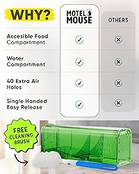 WORRY-FREE CATCH & RELEASE - Mouse friendly live mouse traps, designed to catch mice in a stress and cruelty free way. With extra air holes and plenty of space, these ethical mouse traps provide a comfortable space & a compassionate solution. NO STRESS AROUND KIDS & PETS - Easy set up that only takes a minute and can be used around the home without concerns about accidents. Non killing trap, secure & friendly for kid, cat, dog, hamster, animals. THE COMPLETE PACKAGE - Alive mouse trap with a cleaning brush, tips & tricks, instruction booklet and video guide. Everything you need to become a master mouse catcher in no time! You get all the tools and knowledge for successful, humane catching. NO TOUCH RELEASE - With this trap door mouse trap you release the mouse without coming into contact with it. Motelmouse small mouse live trap with improved release mechanism ensures a smooth release, allowing you use it with confidence and ease. COST-EFFECTIVE - Double humane mousetrap, a smart, reusable & long-lasting solution that saves you money. Rinse and repeat, release your catch, clean the trap with hot water and soap and you're for your next catch. Best humane mouse traps that work.