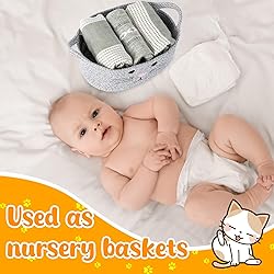 Package Includes: cotton rope basket set includes 3 handwoven storage baskets in three colors, sufficient quantity to meet the storage needs of nurseries and homes Cute Storage: this cute storage basket measures 11.81 x 8.27 x 4.72 inches/ 30 x 21 x 12 cm, which is a ideal size for you to use it to store baby toys, pet toys and other small items Reinforced Handle Design: the cotton rope basket has reinforced cotton handles on both sides to withstand high-strength loads, and the space-saving folding design allows it to be stored flat when not in use, making it ideal for nurseries and home storage Cute Cat Style: this toy storage box has a cute shape, with eyes, nose and whiskers, and a cute shape; It is very suitable as a storage basket, and also a home decoration, or as a gift basket, an ideal gift for friends and family Gift Decoration Basket: cat woven basket is very suitable as a baby shower, graduation ceremony, raffle, bridesmaid gift, and holiday gifts such as Easter, Mother's Day, Valentine's Day and birthday, and is an important part of home storage and decoration