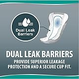 Dual leak barriers provide improved leakage protection and a secure cup fit. Dual core with fast absorption layer. Superior odor protection. Adhesive strip helps keep guard securely in place. Individually wrapped for your convenience.