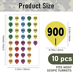 【Waterproof & Fade-Resistant】Made from durable vinyl material, our dope card withstands rain, moisture, and harsh weather, ensuring long-lasting visibility during long range shooting or hunting trips. 【Universal Fit for Most Scopes】You will receive a pack of 10 sheets, with each sheet containing 37 colorful stickers—totaling 370 stickers. Compatible with popular rifle scopes. No need to buy multiple dope cards for shooting—one sticker adapts to your gear effortlessly. 【Quick Distance Adjustment】Instantly reference shooting distances (100-1000+ yards) with clear yardage markings. Perfect for long range shooting accessories to improve accuracy without manual calculations. 【Ideal for Hunters & Shooters】Essential for precision in hunting, target practice, or competitions. Pair with your dope card and rangefinder for faster, smarter shots. 【Easy to Apply & Remove】 Low-tack adhesive sticks securely yet leaves no residue. Compact design stores in your pocket or gear bag as a must-have shooting accessory.