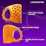 This is the LEFT HAND version of Launchpad Max: Launchpad is made in separate left- and right-handed versions, offering superior comfort versus universal thumb guards and grip enhancers. Patented Bat-Shaped Channel: The ultimate batting aid, Launchpad's unique channel cradles the bat and includes pivot-points that mimic the natural contours of your hand - maintaining the freedom of movement that's crucial to your swing. "Feels like it's not even there": Launchpad's thin but firm material eliminates bat sting without sacrificing the feel of your bat - unlike other bulky thumb guards. Thoughtful Curves: Launchpad isn't just slab of rubber to wrap around the bat. Its ergonomic design makes it feel like a natural extension of your hand - one that you won't have to readjust after every swing. Ergonomic Thumb Slot: Your thumb is not a circle and Launchpad knows that. Unlike other swing trainers and thumb protectors, our thumb slot is designed with that in mind, and Launchpad Max offers a more flexible slot in case you need more room. Sizing: Ideal for those with larger hands/thumbs or who use thicker bat grips/wood bats. For smaller hands, we recommend the Launchpad OG.