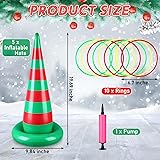 Complete Christmas Toss Game Set: you will receive 5 inflatable Christmas elf hats, 10 inflatable toss rings in 3 color and 1 7-inch hand pump; Whether it is a family gathering or a friend's party, it can allow multiple people to participate at the same time, and add laughter and joy to your festivities Christmas Design: this Christmas party game features a Classic red and green stripe pattern, which looks like a cute elf suddenly appears to join the party; Whether you are at home or at a party, every time you throw the ring, it seems to interact with the elf, perfectly capturing the festive atmosphere of Christmas, and Create unforgettable memories Easy to Use: our inflatable Christmas game is easy to use, just use the included pump to inflate and place on a flat surface, then you can throw the ring, it can be inflated and deflated at any time, easy to store and carry; The size of the Elf hat is about 9.84 x 19.69 inches, and the diameter of the ring after inflating is about 7.09 inches Reliable Material: the Christmas party toss game set is made of PVC material, which is sturdy and long lasting use, non-toxic and odorless, safe and skin-friendly; Whether you are planning a Christmas themed game night or hosting an indoor Christmas activity for kids, this toss inflatable elf hat game is an incredible choice Applicable Occasions: our Christmas ring toss game is suitable for Christmas parties, family gatherings, office celebrations or festive backyard activities; The classic ring toss game encourages friendly competition among guests of all ages, adding fun and interaction to your Christmas celebrations; Share the festive fun with friends and family this holiday season
