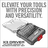 - The X3 Driver 52-Piece Socket & Bit Set is a comprehensive solution for precision tasks and general maintenance. Designed for versatility, the core of the set is the X3 Driver, a 3-in-1 tool that integrates a 72-tooth ratchet for smooth control, a T-handle for improved leverage and a traditional screwdriver for standard applications. This design provides flexibility to handle a range of tasks with efficiency and precision. The driver’s ergonomic grip and diamond-pattern knurling ensure secure handling, even in demanding environments. This set includes a 35-piece collection of the most commonly used bits, making it an essential tool for maintenance and adjustments. Torx, Phillips, hex (both metric and standard), flat and square bits are included to provide compatibility with a wide range of fasteners. Each bit is precisely machined for accuracy and durability, ensuring reliable performance over time. Whether fine-tuning scope mounts, tightening action screws or working on optics, the bit set delivers the precision required for detailed work. The 16-piece socket set adds further versatility to the kit. Featuring both metric and standard sizes, the sockets are constructed with high-quality materials for durability and strength. The included ¼" hex-to-¼" square adapter allows the sockets to integrate seamlessly with the X3 Driver, enabling users to transition effortlessly between bit and socket work. Organization is streamlined with the durable, compact and stackable storage case. Each component has a dedicated space, ensuring the tools remain secure and easy to access. The case’s design also allows for convenient transportation and efficient storage, making it ideal for both at-home and on-the-go use. The compact profile does not compromise on durability, providing long-lasting protection for the tools inside.