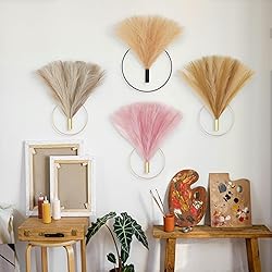 Pretty Jolly Boho Wall Decor, Wall-Mounted Metal Wall Decor, Hanging Artificial Pampas Display, Wall Art Living Room, Bedroom, Bathroom,Plant 2 Pack