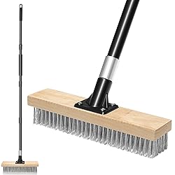 Powerful Cleaning Performance: Crafted from premium stainless steel bristles, this wire brush is a powerhouse for tackling the toughest cleaning jobs. It effortlessly strips away rust, paint, and stubborn grime from rough surfaces like concrete, metal, and wood Ergonomic 58.3" Handle for Effortlessly Cleaning: The 58.3 inches long handle floor scrub brush allows you standing upright for comfortably sweeping or scrubbing. Hard bristle broom head and the handles are in threaded connection, which is uneasy to loosen 45° Ergonomic Angle for Precision Cleaning: The clever 45° angled brush head is designed with your comfort in mind. It glides effortlessly into tight corners, and along edges, eliminating the need for contortions Ergonomic Non-Slip Foam Grip: Stay comfortable during extended use with our contoured foam handle. Designed to reduce hand fatigue, it offers a secure grip even with gloves, ensuring maximum control when scraping ice or brushing off heavy snow Various Application: Use it to strip paint from walls; clean automotive parts; or remove weeds from pavers. Its ability to handle a wide range of surfaces and tasks means you can replace multiple brushes with this single, reliable solution