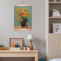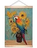 HEYJEEPER Colorful Parrot and Sunflower Wall Art,Inspired by Van Gogh Vintage Oil Painting Style Floral Bird Poster,Artistic Nature Artwork Wall Hanging Decor for Living Room Bedroom 14x18In (Parrot)