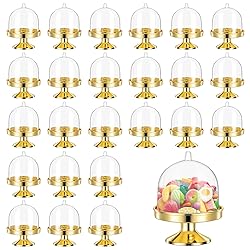 Abundant Set: Our mini cupcake stand with cover set includes 24 pieces mini cake stand with lid, providing ample options for displaying your cupcakes, candies, or cookies. The single cupcake stand with lid is nice for personal use or sharing with friends, these small cake stand with lid meet all your decoration needs. Elegant Presentation: These mini cake stands with lids double as beautiful candy boxes, enhancing the elegance of your handmade treats. Place the cake stand cupcake containers on your kitchen table to captivate guests and whet their appetites. Ideal Size: Each mini cake stand with dome measures approximately 4.13 inches in height and 2.56 inches in diameter, making the mini gold cupcake stand perfect for holding mini cupcakes or other small desserts. A delightful addition to any dessert spread. Charming Design: Featuring a stand and dome cover, these single cupcake stands with lids resemble small cups, adding a cute and charming touch to your desserts. Their exquisite design sets your party apart from the rest. Durable and Reusable: Made from high-quality materials, these cake stand cupcake containers are smooth to the touch, lightweight, and strong. They resist breaking or deforming, ensuring multiple uses for various occasions.