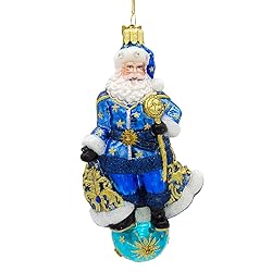 Glass 95%, Mica 5% HOLIDAY TREASURE: Part of Kurt S. Adler’s exclusive Bellissimo collection, known for heirloom-quality ornaments ELEGANCE AND ARTISANSHIP: A unique fusion of traditional style craftsmanship, lavishly intricate designs and highly skilled artistry to be passed down for generations ITEM DESCRIPTION: Add heavenly charm to your tree with Kurt Adler’s Bellissimo Glass Celestial Santa Ornament, featuring Santa in rich blues and silvers adorned with stars and moons. Hand-blown and intricately detailed, it brings an ethereal glow and timeless elegance to your holiday décor. DIMENSIONS: Approx. 4.7" x 4.1" x 8.1"