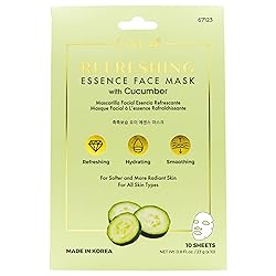 - Transform your skincare routine with Cala Refreshing Essence Face Masks, infused with the cooling and hydrating properties of cucumber extract. These ultra-thin sheet masks are designed to perfectly contour all skin types—normal, dry, combination, and oily—ensuring maximum ingredient absorption to address dullness, uneven texture, and dryness. Enriched with a nourishing blend of fruit extracts, including pumpkin, watermelon, apple, and tomato, alongside cucumber, these masks deliver a surge of hydration and vitality. Botanical extracts like centella asiatica, licorice root, and rosemary soothe and balance, while sodium hyaluronate and allantoin lock in moisture for a plump, dewy complexion. This 10-pack set is perfect for weekly self-care rituals or a luxurious spa day at home, offering a mess-free, K-beauty-inspired solution for achieving glass skin. Simply unfold, apply to clean skin, leave on for five minutes, and massage in excess essence—no rinsing needed. Use twice weekly for optimal results, avoiding eye contact for safe application. Ideal for refreshing tired skin, these masks leave your complexion feeling soothed, smooth, and glowing with health.